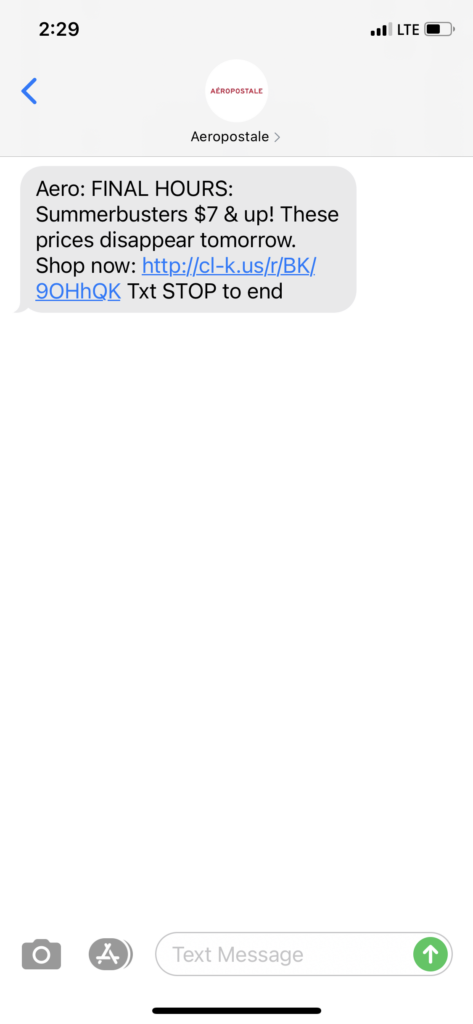 Aeropostale sends subscribers both SMS and MMS text messages.